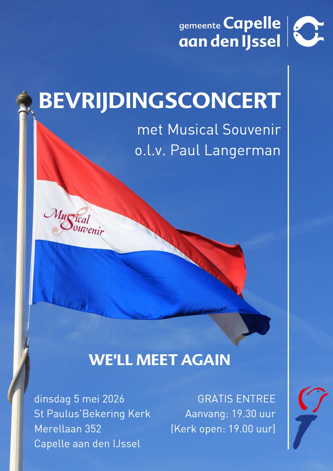 De gemeente Capelle aan den IJssel organiseert in samenwerking met Musical Souvenir en de vrijwilligers van de St. Paulus' Bekeringkerk een mooi bevrijdingsconcert op dinsdag 5 mei 2026. Het concert vindt als elk jaar weer plaats in de kerk aan de Merellaan 352 in Capelle aan den IJssel.